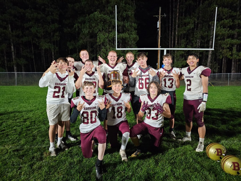 The Barnum Bombers beat the Moose Lake / Willow River Rebels 9-6 to bring home the Little Brown Jug for the second year in a row during regular season play.